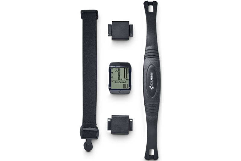 El SET RACE TRAIN que incluye computadora, correa de pecho de frecuencia cardíaca y sensor de cadencia