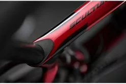 La Scultura 8000 se incluye dentro de la gama alta que la marca taiwanesa ha desarrollado para competición. Su cuadro y horquilla se estructuran con carbono CF3, que destaca por la excelente relación entre peso, rigidez, reactividad y capacidad de absorción de pequeños impactos; además, integra características de la familia REACTO, la más aerodinámica del catálogo y cuyo cometido principal es vencer la resistencia que genera el viento a nuestro avance; aspecto que da buena muestra de su carácter racing, permitiéndonos adoptar posiciones relativamente agresivas con el objetivo de economizar nuestra energía a la hora de avanzar y de maximizar el control de la bicicleta a altas velocidades, pero con una concepción algo más ágil, dinámica y confortable al contar con tecnologías como la S-Flex (en la zona de la tija) para silenciar vibraciones. El resto de componentes (manillar, tija, potencia…) contribuyen a que todo el conjunto se muestre integrado, reforzando su factor aerodinámico (una vez más) y funcional (pues se reducirán al mínimo las turbulencias generadas por el viento) así como estético, con un aspecto limpio y descargado.