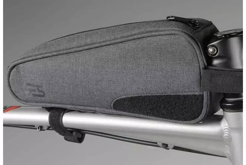 Contiene un bolsillo en su interior contrastado en rojo y está construida con poliéster tremendamente tenaz y resistente, no tendrás que preocuparte por su durabilidad. Se fija a la bici mediante dos correas de nailon que abrazan el tubo horizontal del cuadro, así como el tubo de la dirección, y cierran con potentes y firmes velcros.