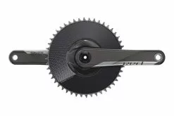 Fabricadas para que des lo máximo en triatlón o el juego de bielas y plato SRAM Red D1 Dub Aero montado en monoplato. El uso del carbono hueco en bielas y araña hace del sistema un conjunto ligero, rígido y, por tanto, eficiente.