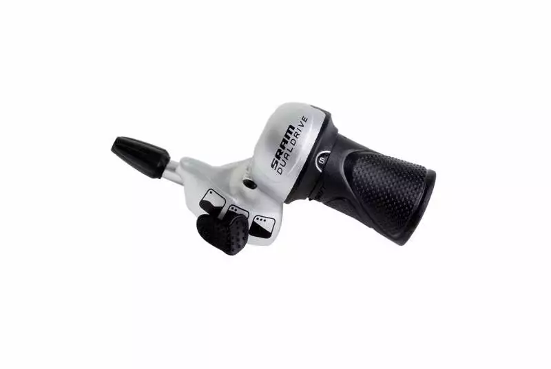 DualDrive de SRAM es un tren de transmisión único que combina un cubo de engranaje interno de tres velocidades con un cassette externo y un cambio. El resultado es una amplia gama de engranajes en un sistema de control limpio y con una sola mano. La palanca de cambios DualDrive presenta un movimiento de cambio de agarre para el cambio trasero y un gatillo que controla los cambios de marcha en el buje interno.
