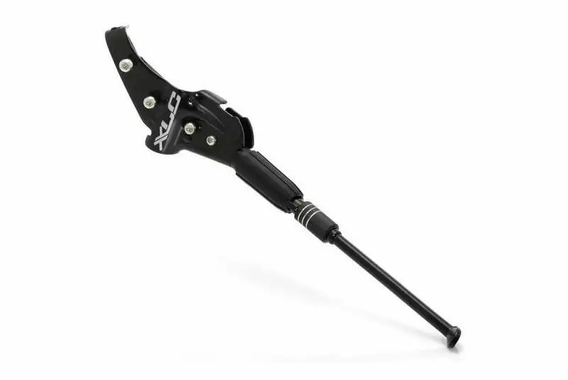 El caballete ajustable XLC KS-R02 con anclaje a las vainas del cuadro. Compatible con tamaños de rueda desde 26″ hasta 28″.
