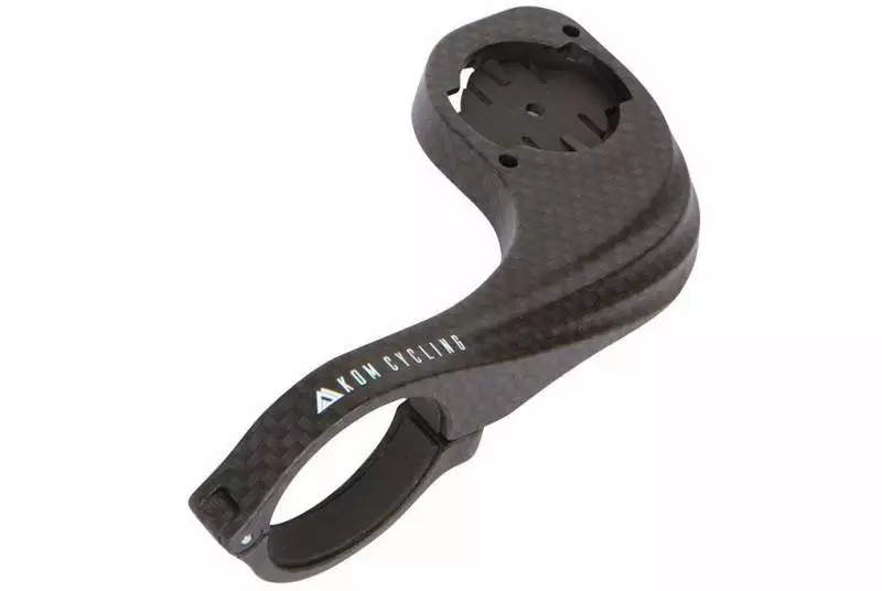Soporte KOM Cycling para Garmin (efecto carbono), concebido para ofrecer una visión clara de los datos de tu ciclocomputador e integrar todo el conjunto de forma sólida y eficiente con el objetivo de minimizar las turbulencias generadas por el viento en nuestro avance